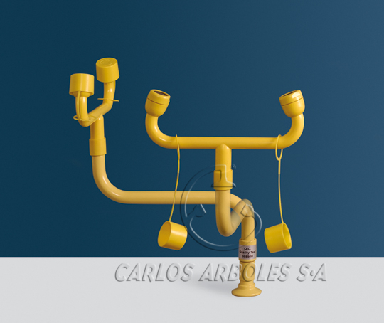 MATERIALS: Eyewash assembly in ABS plastic. Two high-flow aerated water spray at low pressure with automatic opening anti-dust cover.